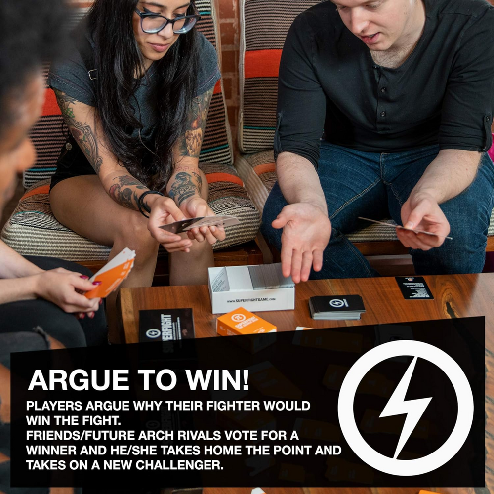 - Perfect for party nights: Gather your friends and family for a night of hilarious arguments and friendly competition. Superfight is a fast-paced, easy-to-learn game that guarantees hours of fun for everyone.