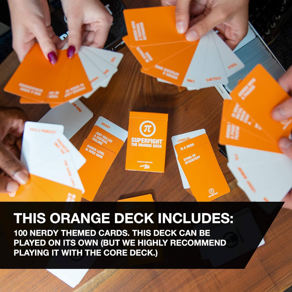 - Fuel your funny bone: A Superfight is all about creating ridiculous scenarios and debating who would win. The Orange Deck cranks up the comedy meter with even more nonsensical matchups and laugh-out-loud abilities.