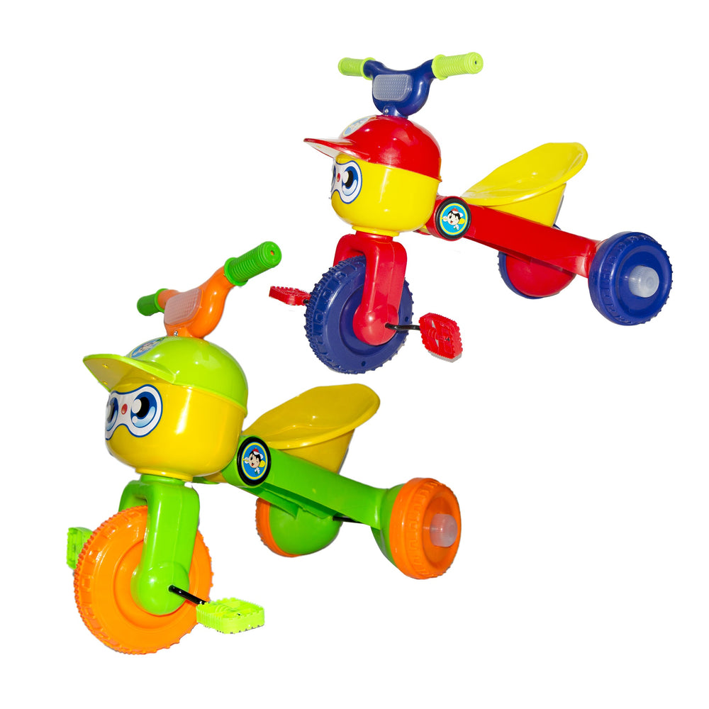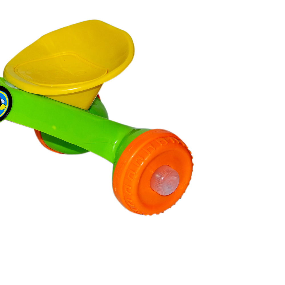 - Tri Cycle for kids with music and lights on handle. Kids will roam in the house with music and lightning effect. Please Note: 2 AA Batteries are required.
