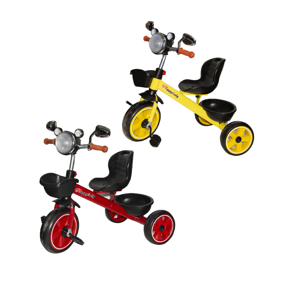 - These smartly designed tricycles come with many features your children will love! Comes with a front light, both side mirror, front & rear basket, your child will be able to take their favorite toys along on the ride!