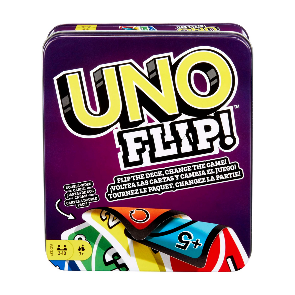 - UNO FLIP! Tin comes with 112 cards and instructions in a sturdy tin that's great for storage and travel.