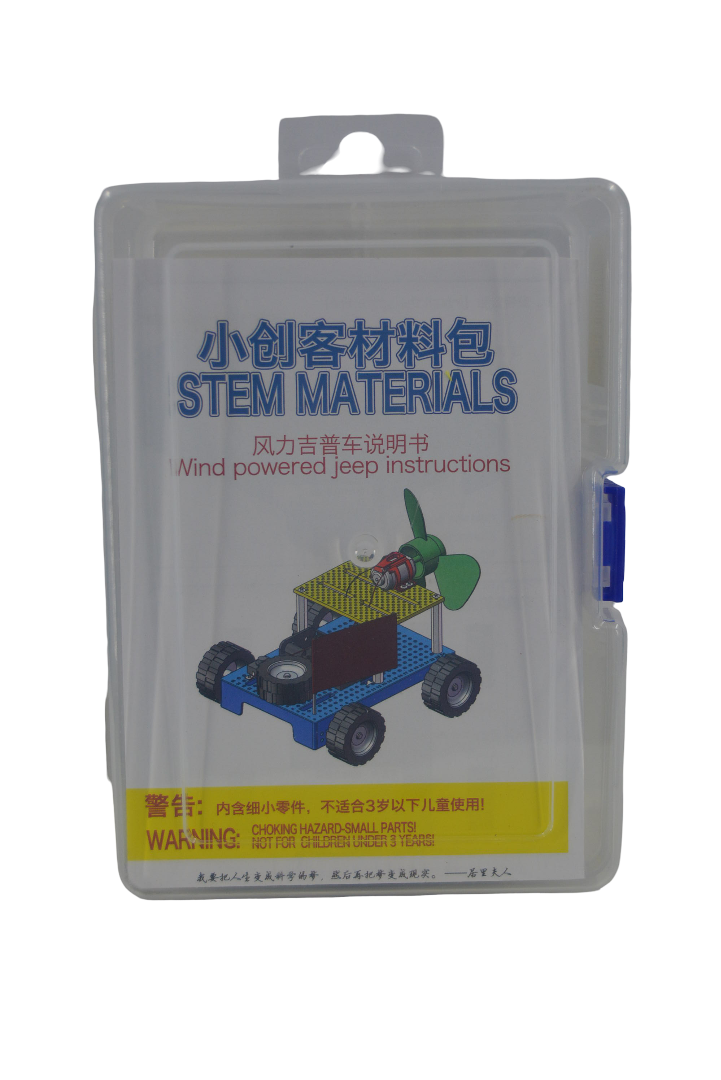 DIY STEM kit for building a wind-powered jeep. A fun and educational project for young learners.